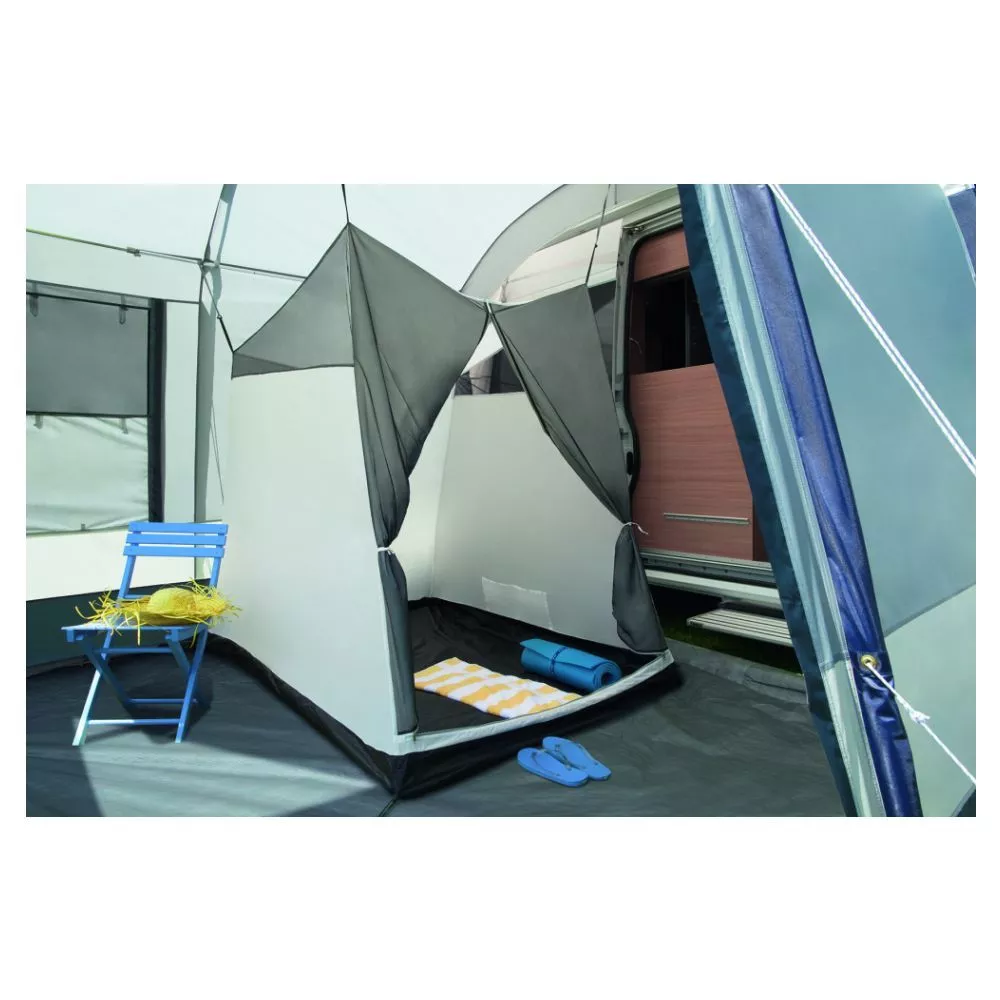 Bestellen Sie das praktische Schlafzelt passend für das Busvorzelt dwt Luna Air gleich mit! Es ist atmungsaktiv, mit komplettem Gazeeinsatz in der Eingangstür, die sich zusätzlich blickdicht verschliessen lässt, und verfügt über eine Bodenwanne aus wasserdichtem, beschichtetem Gewebe.