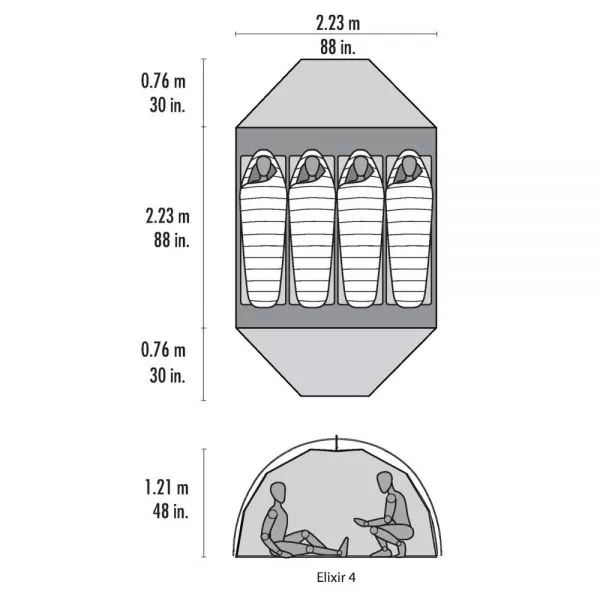 Mit all den Merkmalen, die man von MSR erwarten kann, bietet das Zelt MSR Elixir 4 Neulingen (und erfahrenen Rucksackcampern) ein extrem wohnliches, überraschend leichtes Rucksackzelt zu einem grossartigen Preis. Die Konstruktion des Zeltes bietet jede Menge Platz im Kopfbereich und Raum für vier Erwachsene und ihre Matten, zwei grosse StayDry-Türen für den bequemen Einstieg sowie zwei grosse Eingangsbereiche mit 35% mehr Stauraum. Das Zelt ist aus atmungsaktivem Netzgewebe und solidem Vordachmaterial gefertigt. Das MSR Elixir 4 bietet Belüftung, Wärme und Sichtschutz, während die mitgelieferte Zeltunterlage mehrere Aufstelloptionen ermöglicht.