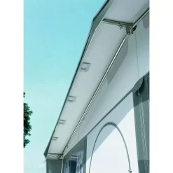 Das Vorzeltsonnendach brand Solair ist passend für fast alle Brand-Ganzeinzugszelte mit Giebel und Vordach. Einmal am Vorzelt fixiert, ist ein Abbau nicht nötig. Bei starkem Wind und Regen oder während deiner Abwesenheit ist es, aufgerollt durch zwei Personen, schnell unter dem Vorzelt-Vordach geschützt verstaut. Eine ideale Ergänzung deiner Campingausrüstung, wenn du zusätzlich zum Vorzelt Wert auf einen Sonnenplatz legst. Das Universal Vorzelt-Sonnendach brand Solair kannst du in wenigen Minuten aufbauen. Alternativ kann das Solair auch direkt am Wohnwagen verwendet werden, dann allerdings mit eingeschränkter Passform.